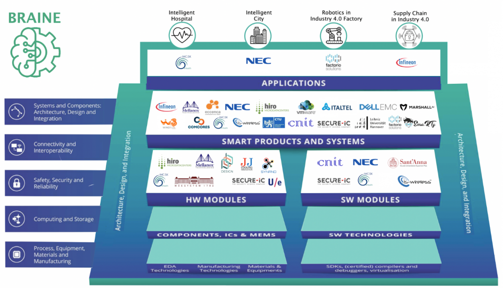 Braine plays a key role in positioning Europe at the forefront of smart Edge Computing, thanks to funding from ECSEL JU under Grant Agreement nr. 876967. For the financing of this project, ECSEL JU is supported by the European Union’s Horizon 2020 research and innovation program and by the national authorities of Italy, Poland, the Netherlands, Israel, Ireland, Hungary, Germany, Switzerland, Finland and the Czech Republic.